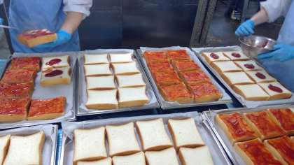 今日の給食なんだろな 公開日 2021/05/19 更新日 2021/05/19 今日の給食 1.ケチャップを塗ります。 2.野菜とチーズを乗せます。 3.高温で4.5分焼きます。 さて、何でしょうか。