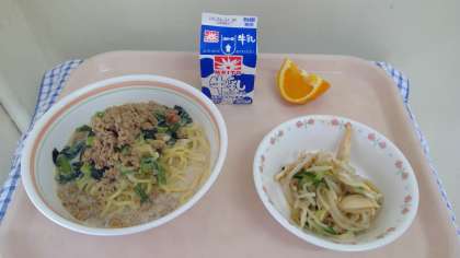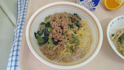 スープは鶏ガラでだしを取り、白みそ・練ごま・豆乳でコクを出しました。色々な生徒に聞いてみると、辛いのが苦手の声も多くあり…今日はまったりした担々麺です🍜