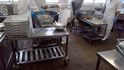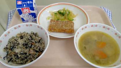 今日はいかの更紗揚げです。更紗は布の種類のことだそうです。揚がった姿が更紗に似ているので更紗揚げです。2枚目の写真はご飯をクラスのバットに入れている所です。