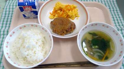 5月31日(月)の献立 公開日 2021/05/31 更新日 2021/05/31 今日の給食 ・ご飯 ・牛乳 ・おろしハンバーグ ・人参しりしり ・すまし汁 6月1日は開校記念日でお休みです。2日3日は前期中間考査です。「明日は1日勉強頑張って!献立」ということで、おろしハンバーグです☺ 食材産地 玉ねぎ 佐賀 レンコン 千葉 大根 青森 人参 千葉 小松菜 東京 豚肉 茨城