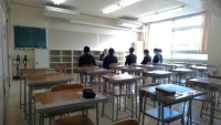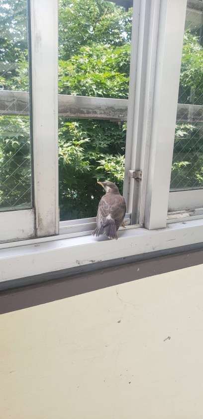 3校時目のこと。K原先生が「K保先生!侵入者!侵入者!」と職員室に戻ってきました。慌ててかけつけると、そこには可愛らしいお客さんが。みんなでワイワイ言いながら、窓を開けたり誘導したりして、無事に空に戻っていきました。