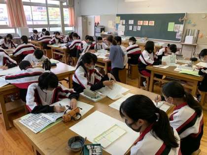 2学年美術、ポスターの作成の様子です。各自デザインもほぼ出来上がってきていました。レタリングも丁寧に行っていました。