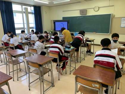 1学年英語、「いつ・どこなのかをたずねよう」「want to」の使い方を学習しました。ペアでの会話もスムーズです。最後はタブレットのteamsで班ごとに会話を練習する準備をしました。