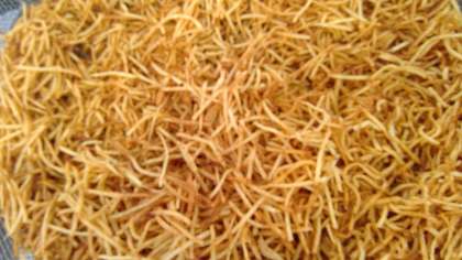 サラダにはカリカリに揚げた千切りポテトをトッピングしてあります。