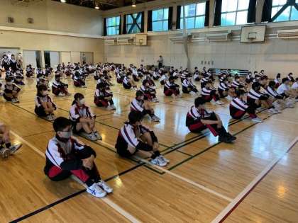 5日(月)は全校朝礼でした。校長先生からは、「凡事徹底」について話がありました。生活指導部からは、7月の生活目標「気力・体力の充実」手洗い・うがいをこまめにして、感染対策をし、健康を維持しよう。そして7月の安全目標「水の事故への細心の注意を払う」「どこかに危険な箇所がないかを確認する」「自転車のマナーや交通ルールを守る」「夏季休業中の安全な生活を身に付ける」の話がありました。