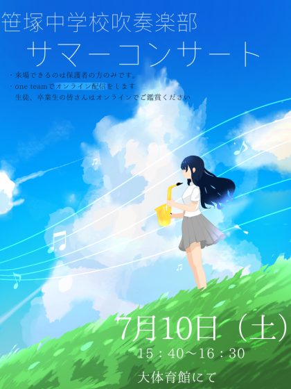 保護者会の後、吹奏楽部が本校体育館でサマーコンサートを行います。