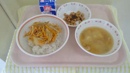 今日はかき揚げ丼です。野菜を細く切って、打ち粉をしてから衣と和えて揚げました。大豆昆布煮はスーパーでパック入りのものも売っています。こまめに豆類を食べると、健康な体作りに役立ちます💪