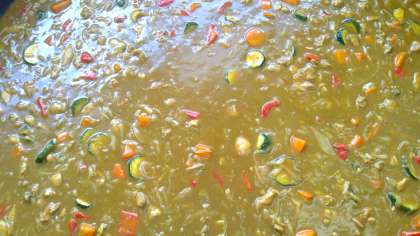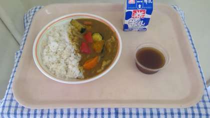 カレーに入れた夏野菜は、赤パプリカ・ズッキーニ・南瓜です。水ようかんは黒糖を入れて作りました。夏休み中もしっかり食べて、元気に過ごしてください🌞