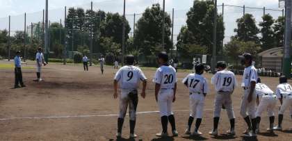 灼熱の暑さの中、三鷹市大沢総合グランドにて東京都大会1回戦が開催されました。