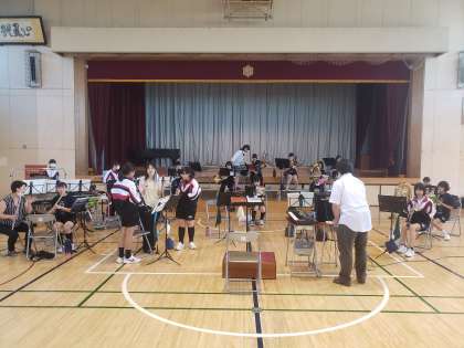 吹奏楽部は、来たる8/5(木)のコンクールに出場するために、最後の追い上げをしています。連日各楽器のコーチが熱く指導をしてくださり、昨日は、もしもホールで演奏ができなくなってしまった時のため用の、事前提出録画を撮影しました。昨年はコロナウィルスのために大会自体が中止となり、特に卒業した高1、今の3年生は悔しい思いをしました。そしてこの1年半以上もの間、いつも吹奏楽部を応援してくださっている方々に演奏をお届けできない歯がゆさもあります。