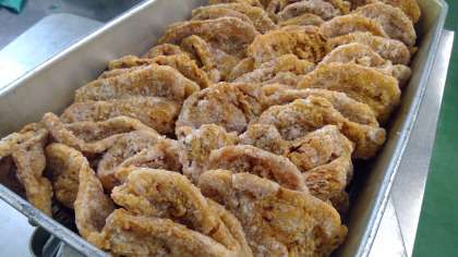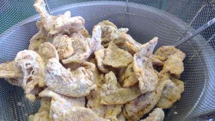 色よく揚がってきました。今日はご飯にのせて野菜あんをかけていただきます🍚