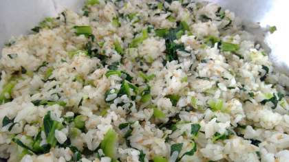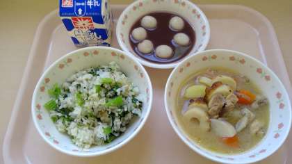1月15日(水)の献立 公開日 2025/01/16 更新日 2025/01/16 今日の給食 ・じゃこ菜飯 ・牛乳 ・鶏と野菜の味噌煮 ・白玉ぜんざい 小松菜・ごま・ちりめんを混ぜたじゃこ菜飯です。ごまとちりめんはごま油を混ぜてオーブンで焼いています。 味噌煮はたっぷりの野菜と鶏に、にんにくを少し入れています。 1月11日が鏡開きだったので、白玉ぜんざいも作りました。