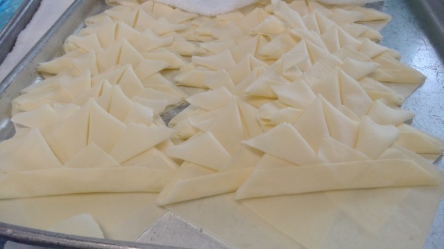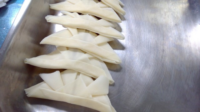 5月5日の【こどもの日】にちなんで、かぶとの形に春巻きの皮を折っています👒