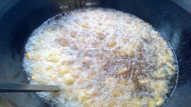 いかのかりん揚げを作っています。揚げた見た目がかりんとうに似ているから、かりん揚げなのだそうです。