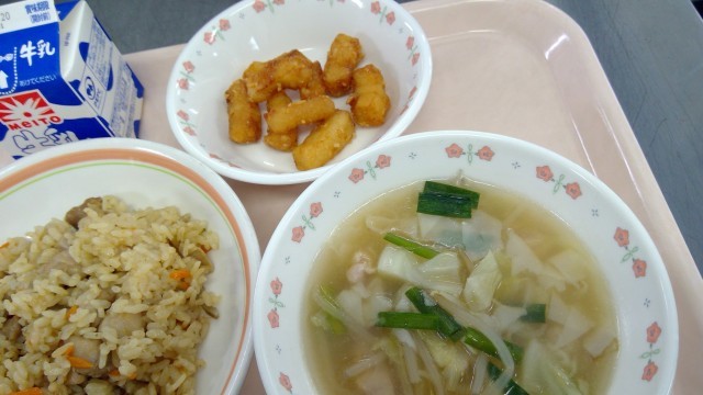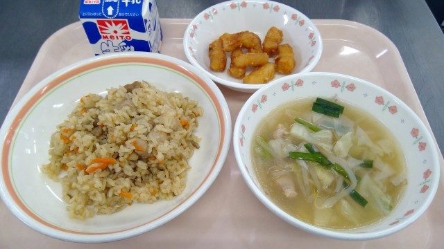 5月14日(水)の献立 公開日 2025/05/14 更新日 2025/05/14 今日の給食 ・鶏ごぼうピラフ・牛乳・いかのかりん揚げ・ワンタンスープピラフの時は炊き上がったお米にバターをのせて蒸らしています。そうするとバターの風味が残りやすくなります。いかは青森産のむらさきいかですくコ:彡
