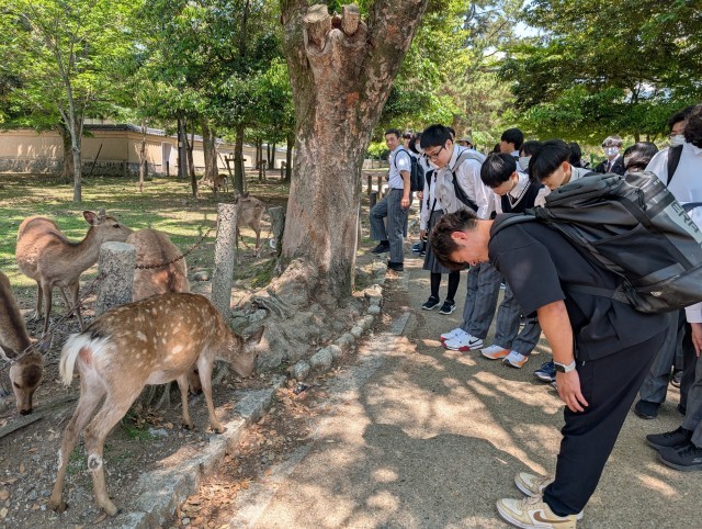 奈良といえば「鹿」という印象ですが、それよりも人が多い!生徒たちは英語科の課題『Youは何しに日本へ?~渋谷いいとこ、一度はおいで~』にも取り組んでいます。どんな素敵な出会いが待っているかな?
