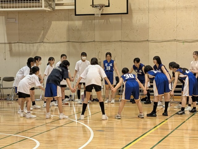 昨日修学旅行から帰ってきた3年生ですが、女バスは公式戦に臨んでいます。