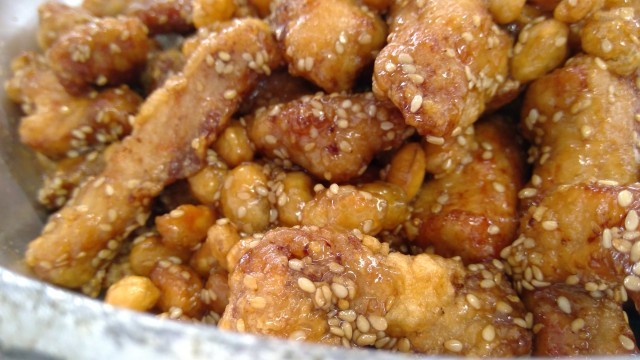 かりん揚げの豚肉は、お肉屋さんに拍子切りに切ってもらっています。立派なサイズのものが届きました。