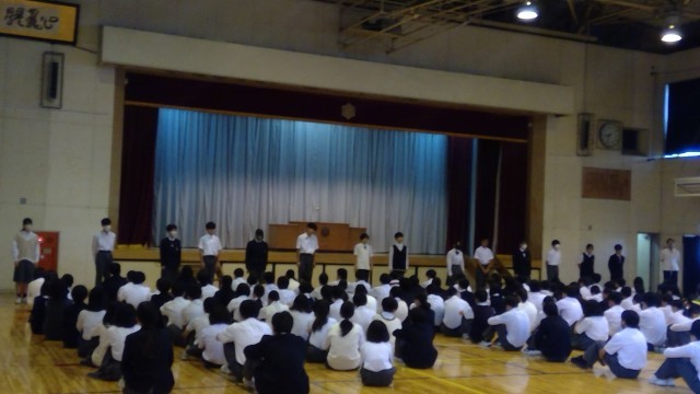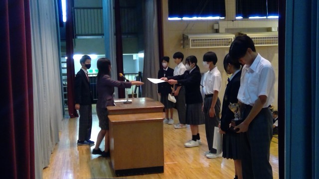 先週の水曜日に行われた運動会の閉会式を、本日の朝礼で行いました。