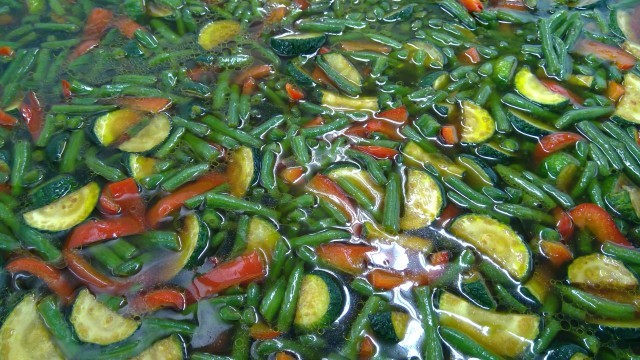 揚げびたしには、ズッキーニ・パプリカ・いんげんを使用しています。
