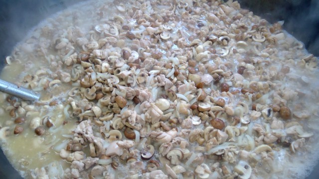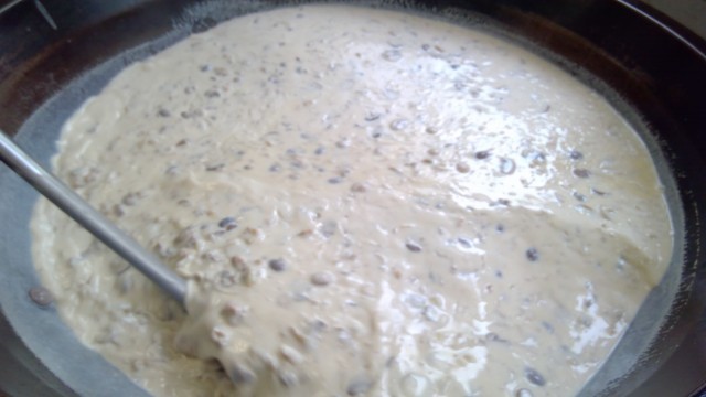 たっぷりのマッシュルームを使って、クリームソースを作っています。