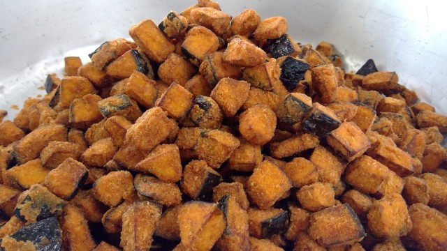6月26日(木)の献立 公開日 2025/06/26 更新日 2025/06/26 今日の給食 ・ご飯・牛乳・豚のニラソース・かぼちゃフライ・めかぶスープ今日は豚肩ロースを焼いて、ニラソースをかけました。ソースは玉ねぎ・にら・にんにくと調味料です。かぼちゃは角切りにして衣付けをしてフライにしました。