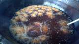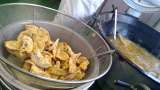 成形が終わったら1シートずつ揚げていきます。具には火が通っているので、揚げ時間は...