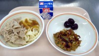 ・肉おろしうどん・牛乳・お好み揚げ・アメリカンチェリー今日は大根おろし入りのうど...