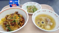 ・うなぎのひつまぶし風・牛乳・キャベツの浅漬け・白玉汁今日は土用の丑の日献立です...