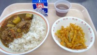 ・夏野菜カレー・牛乳・パリパリサラダ・ココアプリン色々な具材を使って夏野菜カレー...