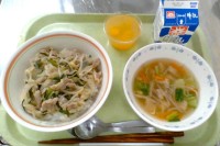 今日の給食は、季節の行事のハロウィンメニューです。ぶどうジュースとみかんジュースの2層にしたゼリー(写真2枚目)と、かぼちゃを具材にいれたシチュー(写真3枚目)です。ゼリーは、紫色とオレンジ色がきれいな2色に仕上がりました。お休みが多かったのですが、みなさん沢山食べていました。