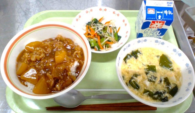 今日は『牛バラあんかけごはん』という中華料理のメニューです。中華料理の横尾先生からのシェフメッセージは裏面にありますので、読んでみてください。11月から3回行ったコラボ給食With服部学園のメニューはいかがでしたか?