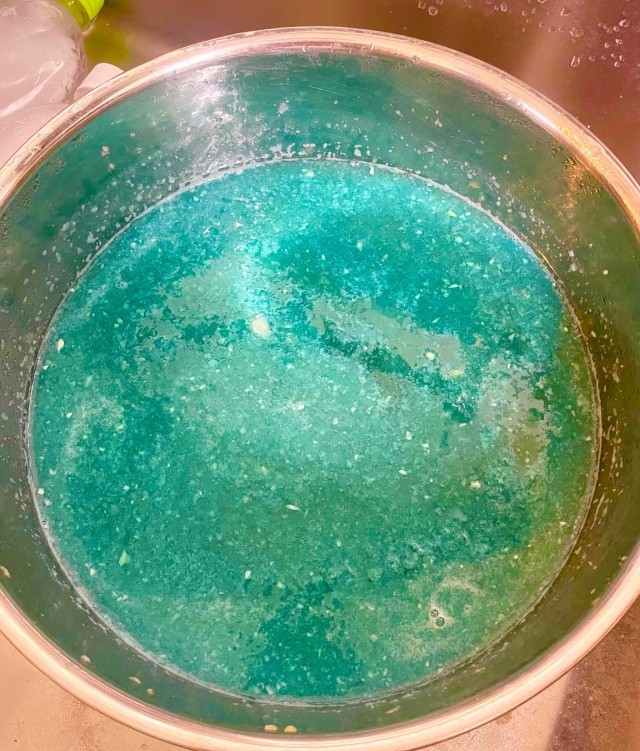 スペイン語で「アロス」はごはん、「ポーヨ」は鶏肉のことです。今日の給食では、炒めた野菜や鶏肉を塩やカレー粉で味付けし、ごはんに合わせました。ごはんの緑色は、ほうれん草とコリアンダーの色です。