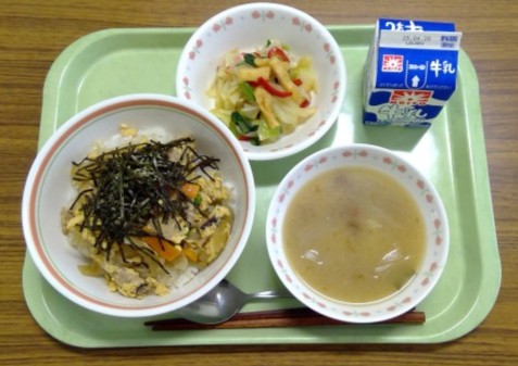 今日の親子丼も卵を熱により固めて作っています。
