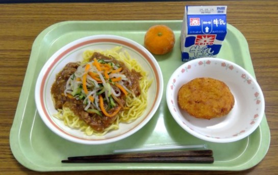 今日は、給食でも人気のメニューのジャージャー麺です。