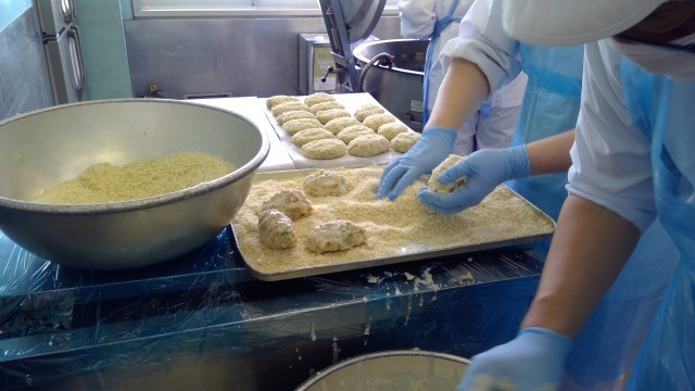 コロッケの具材に水分があったため、コロッケの成形や揚げた時の形が崩れやすかったため、慎重に丁寧に調理をしました。