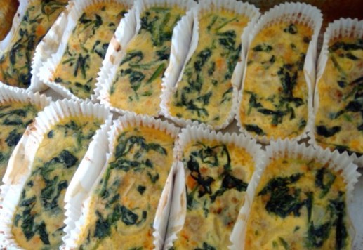 写真3枚目は、ほうれん草の卵焼きが焼きあがった様子です。具材は豚ひき肉・人参・玉ねぎ・ほうれん草・たまごです。