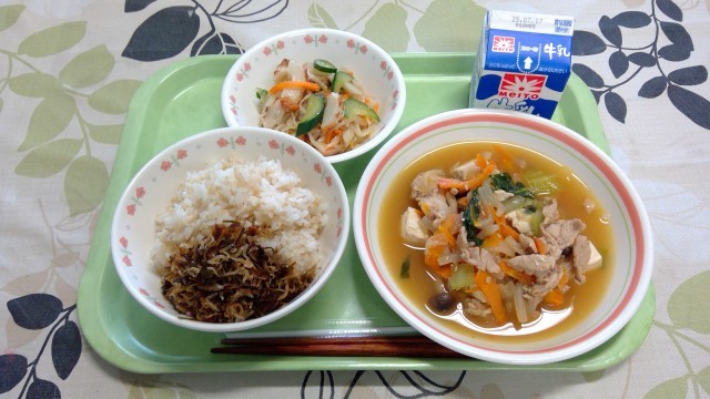 こんぶのうまみ成分である「グルタミン酸」は、細胞の中にあります。乾燥や、加熱させることで細胞が壊れてうまみが出てくるのです。今日は、小魚ふりかけに、こんぶが入っています。