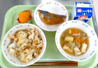 今日の献立●こんぶごはん●魚の味噌ゆず焼き●田舎汁●柿(富有柿)●牛乳柿は秋から...