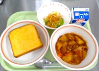 今日の献立 【コラボ給食With服部学園】●黒砂糖パン★カポナータ風パスタとシチ...