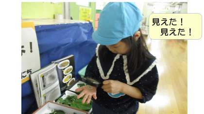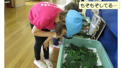 飼育ケースの前を通るたびに「大きくなったね」と興味深々、見入っていました。
