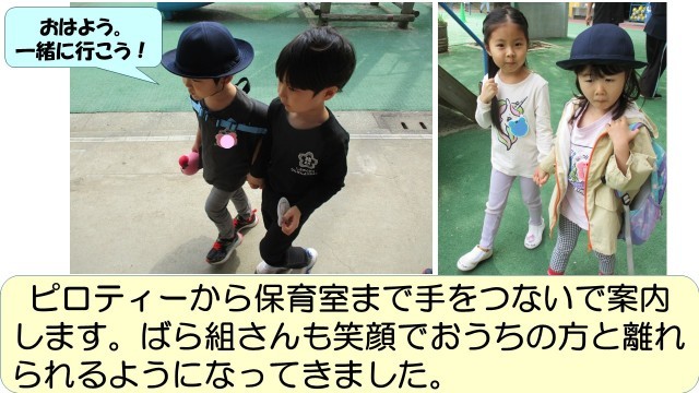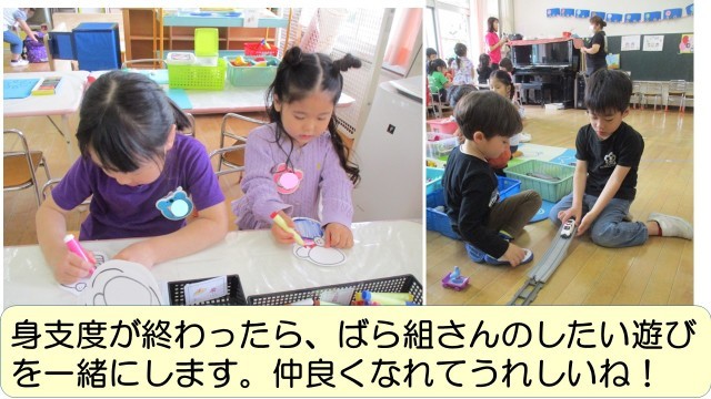 ばら組の動きや気持ちに合わせて、丁寧に関わっているすみれ組の子供たち、とてもかっこよくて、頼もしいです!