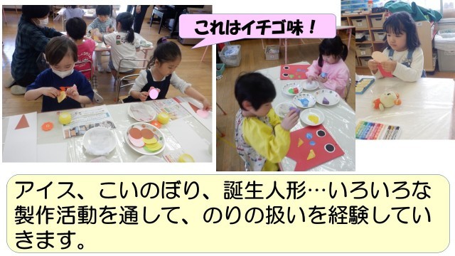 一つ一つ経験を増やして ~年少ばら組~ 公開日 2025/05/05 更新日 2025/05/05 臨川幼稚園の子供たち 好きな遊びでは、ウレタン積み木を使って少しずつ遊びの場を作って遊び初めています。使い方が分かるようになってきました。みんなでする活動ではのりや絵の具など一つ一つ新しいものに触れながら楽しい経験を積み重ねています。 +2