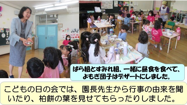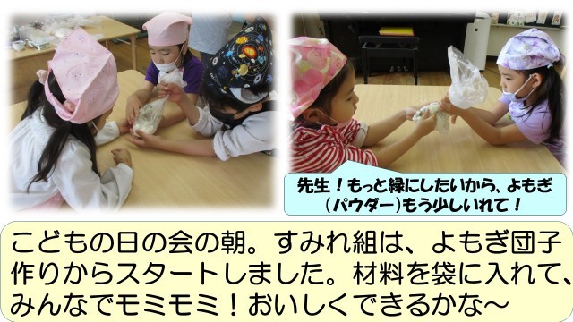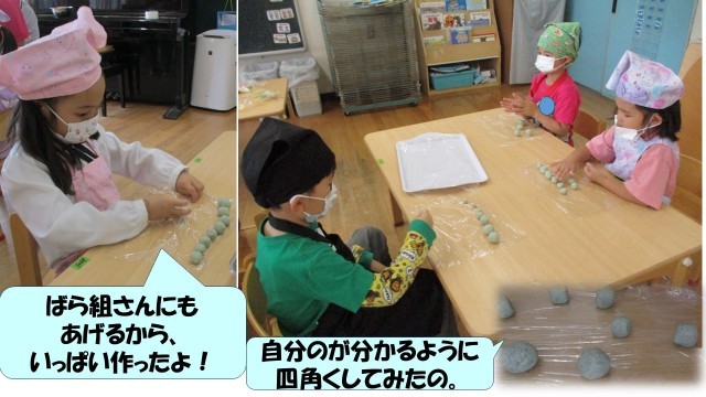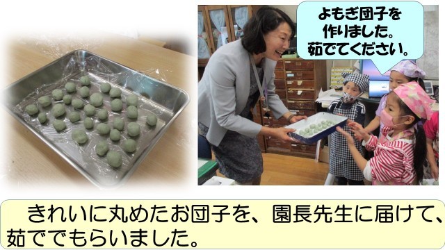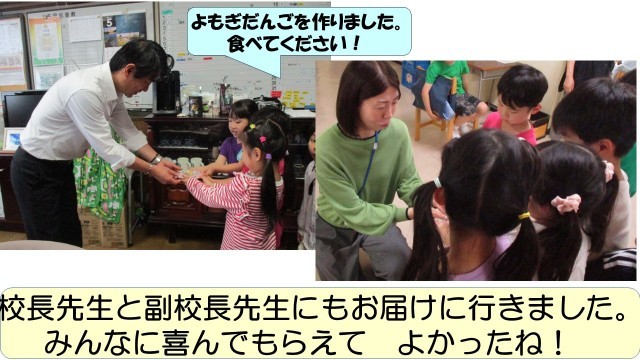 こどもの日の会~よもぎだんご作り~ 公開日 2025/05/16 更新日 2025/05/16 臨川幼稚園の子供たち 5月2日にこどもの日の会がありました。それぞれの学級で作ったこいのぼりを紹介したり、歌を歌ったりして過ごしました。 その後、すみれ組が作ったよもぎ団子を、みんなで一緒に食べました。ばら組がおいしそうに食べる姿を見て、嬉しそうなすみれ組でした。 +3