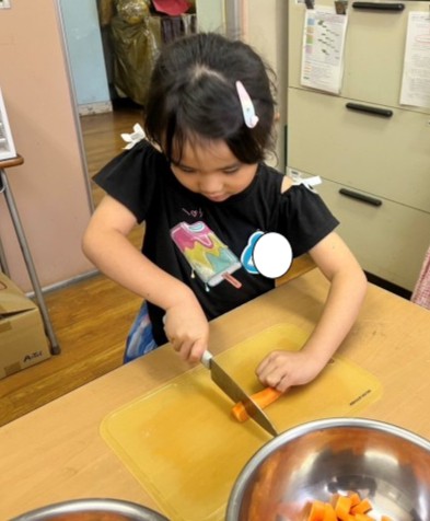 カレー&ゼリー作ったよ!! 公開日 2025/07/16 更新日 2025/07/16 お知らせ そら組の子供たちは、カレーライスの野菜を切りました。はな組の子供たちが育てたナスとピーマンも入っています。デザートは、いちごとみかんのゼリー。はな組もそら組も自分の分のゼリーを作りました。「はやくカレー食べたいな!」いい匂いがしてきて、カレーパーティーへの期待が高まる子供たちでした!!