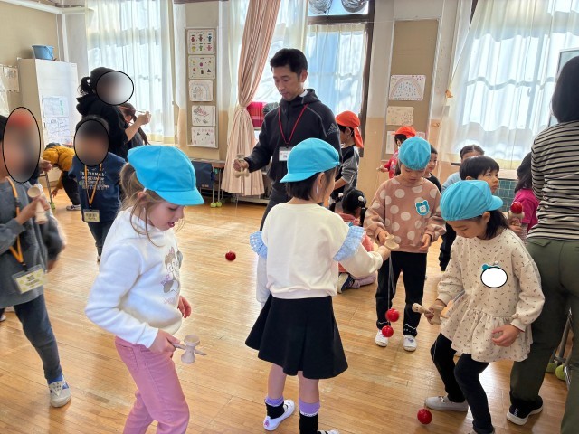 1年生とお正月遊びをしたよ 公開日 2026/01/16 更新日 2026/01/16 お知らせ 今日は、オープンスクールでした。1年生が用意してくれたお正月遊びの場に遊びに行きました。だるま落とし・けん玉・コマ・お手玉の場所があり、それぞれのコーナーの1年生が、遊び方を教えてくれました。初めてのことに挑戦したり、小学生の見せてくれた技に挑戦したりしながら楽しい時間を過ごしました。 +3