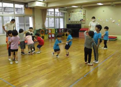 鶴岡先生の運動指導 その1 公開日 2021/06/11 更新日 2021/06/11 お知らせ 外部講師の鶴岡先生をお招きして、各クラス運動遊びを楽しみました。 年長そら組はグループでの運動を中心に、年少はな組は体幹運動とマット運動を中心に体を動かしました。 始めは少しドキドキした「お願いします」挨拶でしたが、たくさん体を動かして、 心も体も解きほぐれ、最後には元気いっぱい「ありがとうございました」の挨拶をすることができました。次回の鶴岡先生の運動指導の日が待ち遠しいです。