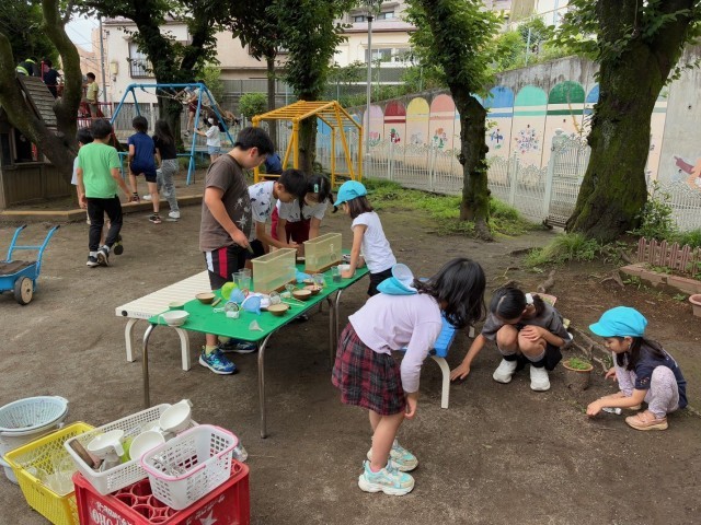 5年生と遊んだよ! 公開日 2025/06/12 更新日 2025/06/12 お知らせ 午前中は5年1組、午後に5年2組のお兄さん・お姉さんが遊びに来て、交流を楽しみました。鬼ごっこ、学校ごっこ、魚釣り、砂場…様々な遊びが一緒にできて大喜びの子供たちでした。次の交流が楽しみです!