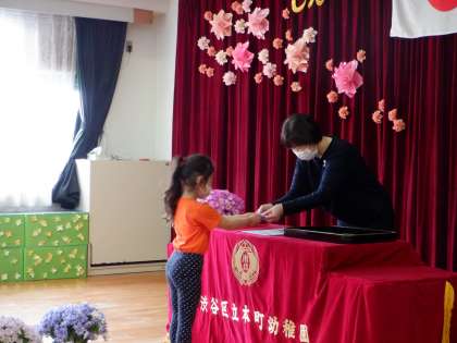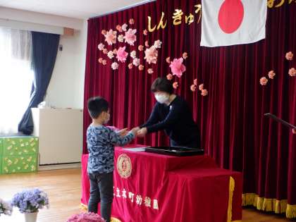 いよいよ始業式!桜のはなびら降る園庭 公開日 2022/04/06 更新日 2022/04/06 子どもたちの様子 令和4年度の本町幼稚園が始まりました。 すみれ組の始業式の日です。 園長先生からピカピカの水色の名札をもらい、立派なすみれ組の表情が見られました。 今日はとてもよいお天気で、園庭の桜は幸運なことにまだ八部咲きといったところでしょうか。 花びらがひらひら降る中で、のびのびと遊び、春の1日を過ごすことができました。 明日からまた何で遊ぼう?わくわくの日々が始まります。
