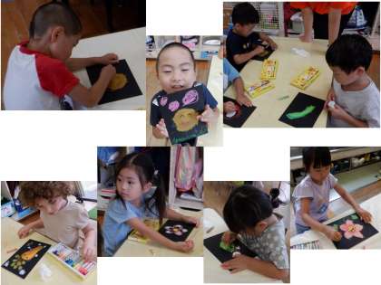 本町幼稚園では、子供たちといろいろな体験をするのは幼稚園の先生たちだけではありません。7月11日、今日は、もも組の友達のお母さまと、チョークアートを体験しました!